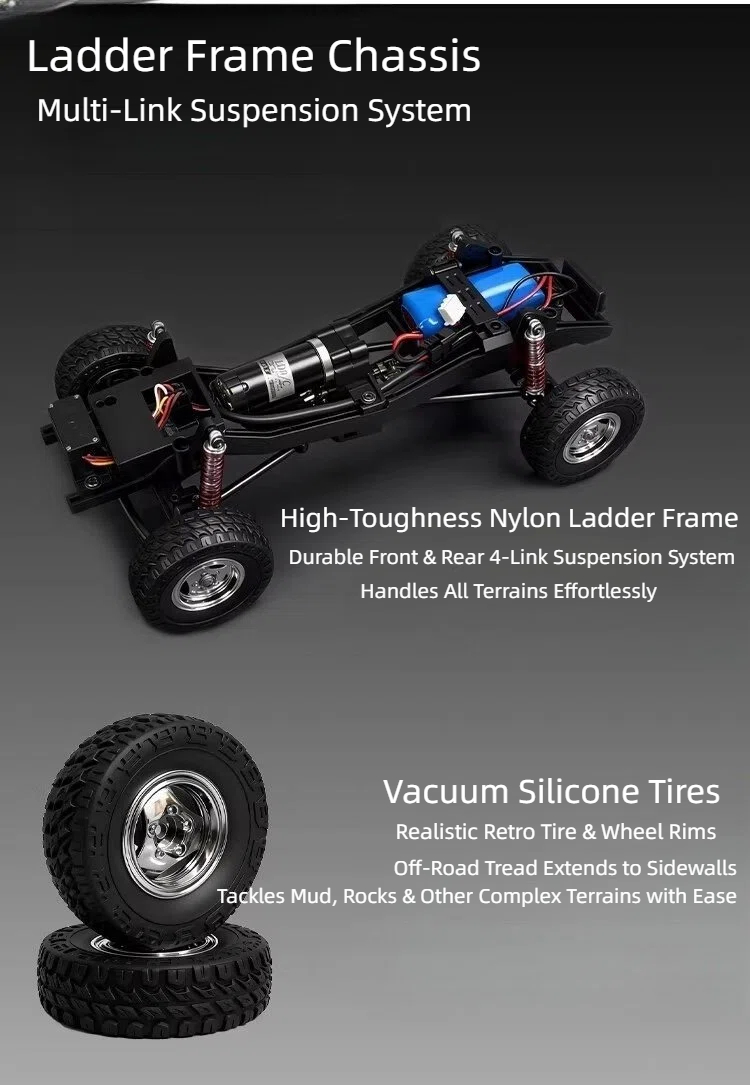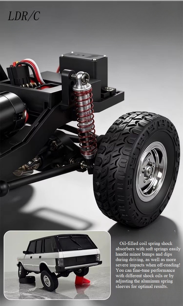 LDRC 18401PRO rc car features a sensorless brushless motor, 9g servo for precise response, high-tensile nylon chassis, and a robust front and rear linkage suspension system.